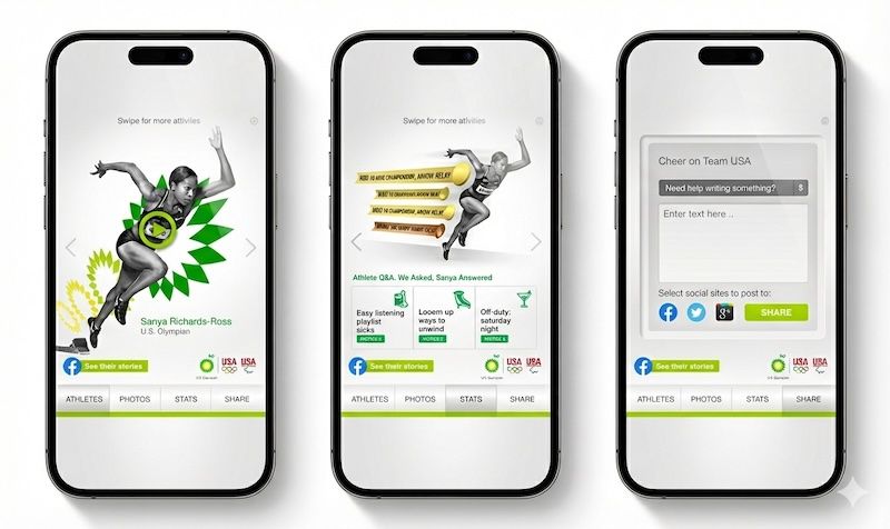 Olympic advertising is crowded with spectacle and clichés. Athletes become highlight reels, brand messaging gets bolted onto “Go team USA” messages. Our challenge was to humanize the athletes as they went through the Olympics, updating the campaign live as athletes were cut from events, and integrating BP into their story without making it about the corporation.